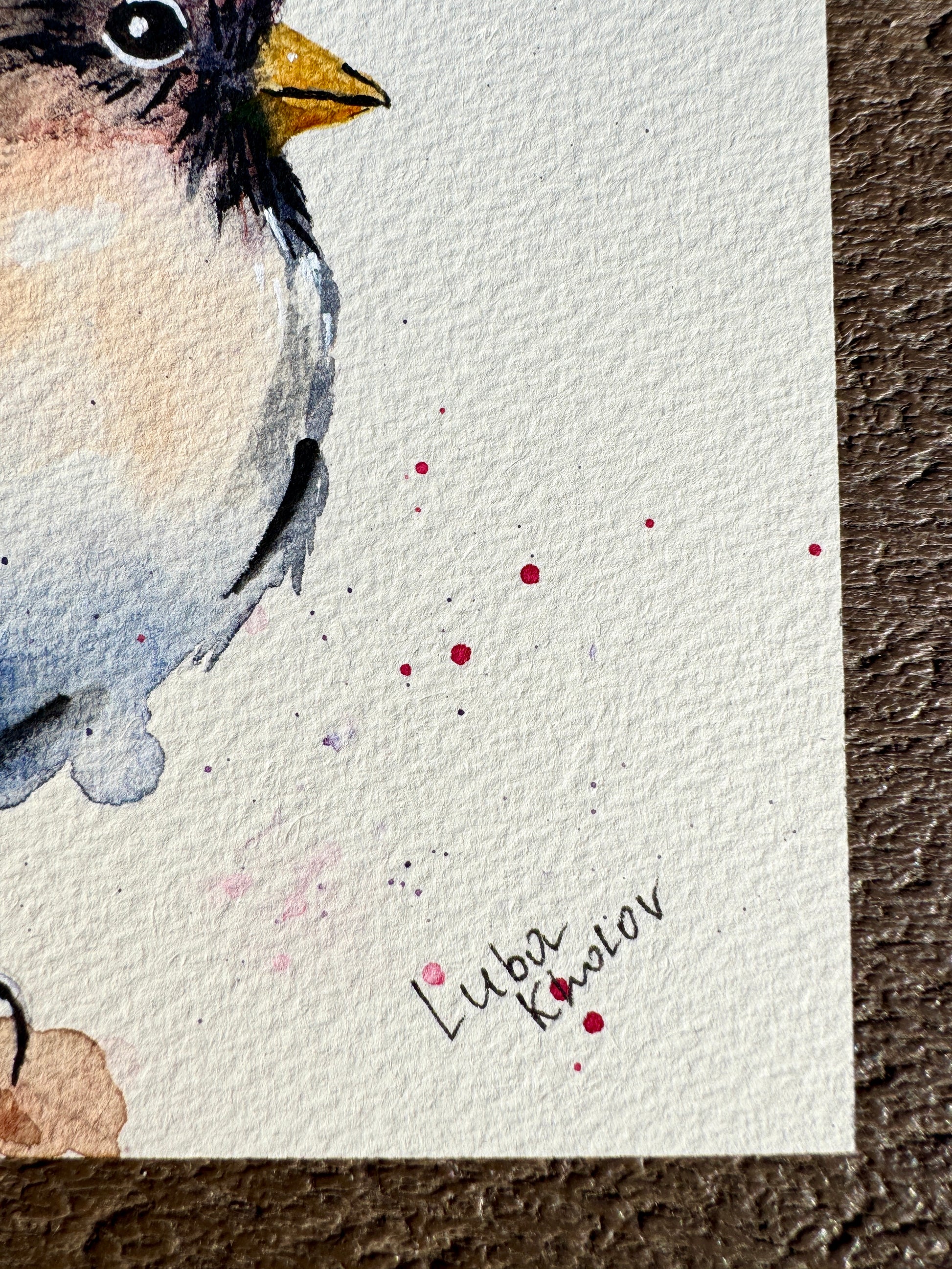 Celebrate the delicate beauty of the Common Redpoll Female with this hand-painted watercolor portrait. Inspired by the legendary ornithologist John James Audubon, this artwork captures the soft, fluffy feathers and striking red and grey hues of this charming winter songbird.