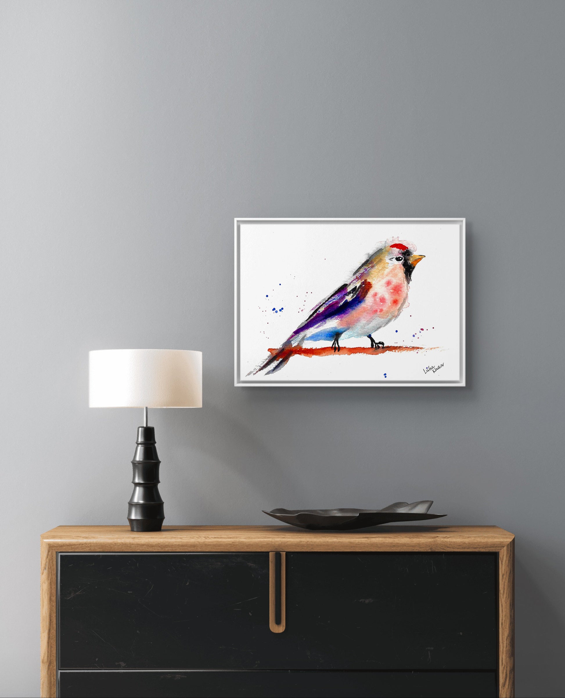 Step into a world of nature’s charm with this enchanting watercolor painting of a male Common Redpoll, gracefully perched on a branch. The Common Redpoll is a winter visitor to New York City and can often be seen in Central Park.