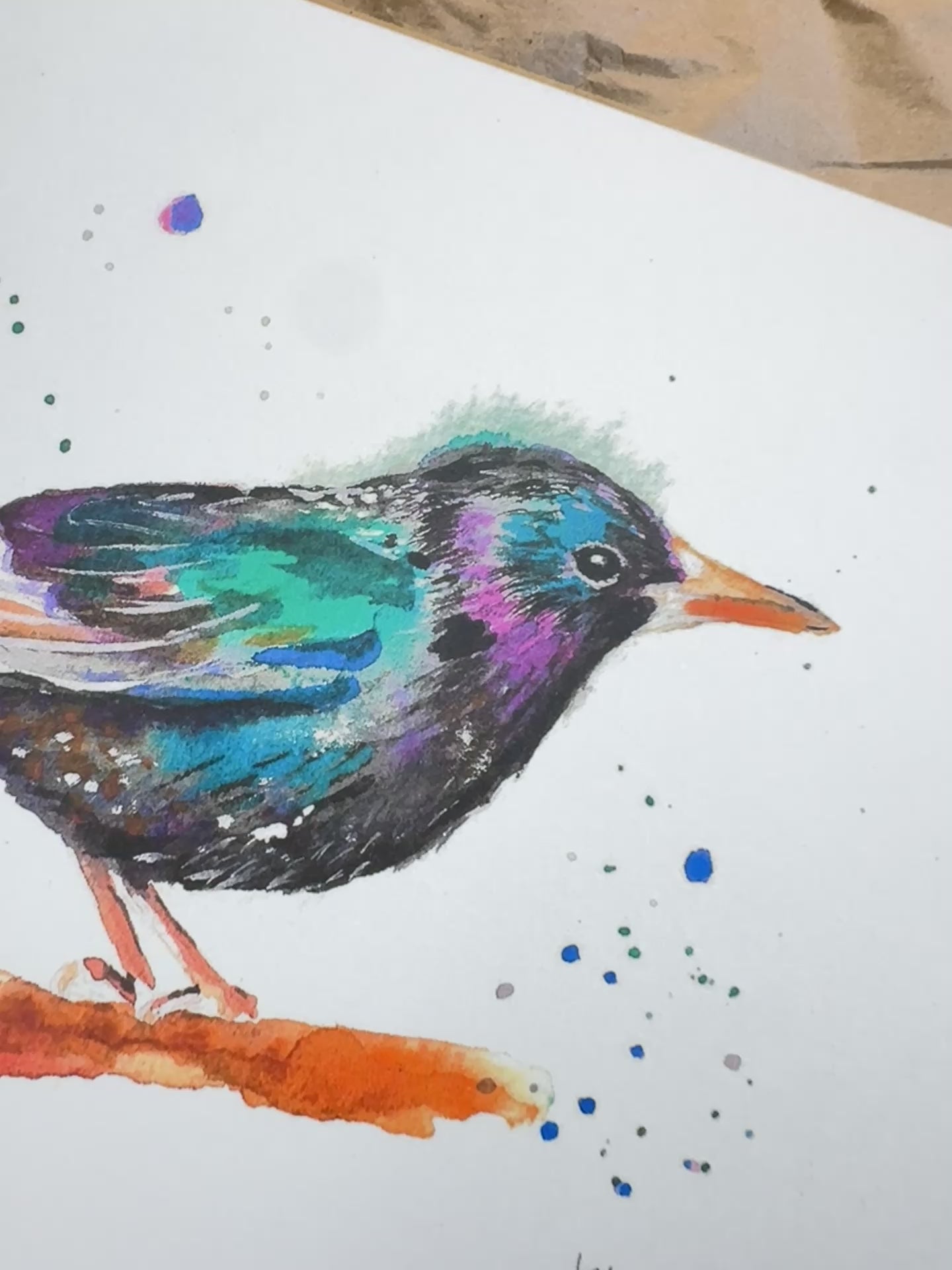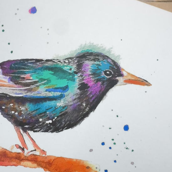 Determined European Starling Art Print is reproduced from an original watercolor painting by Luba Kholov and is part of the Birds of NYC series.