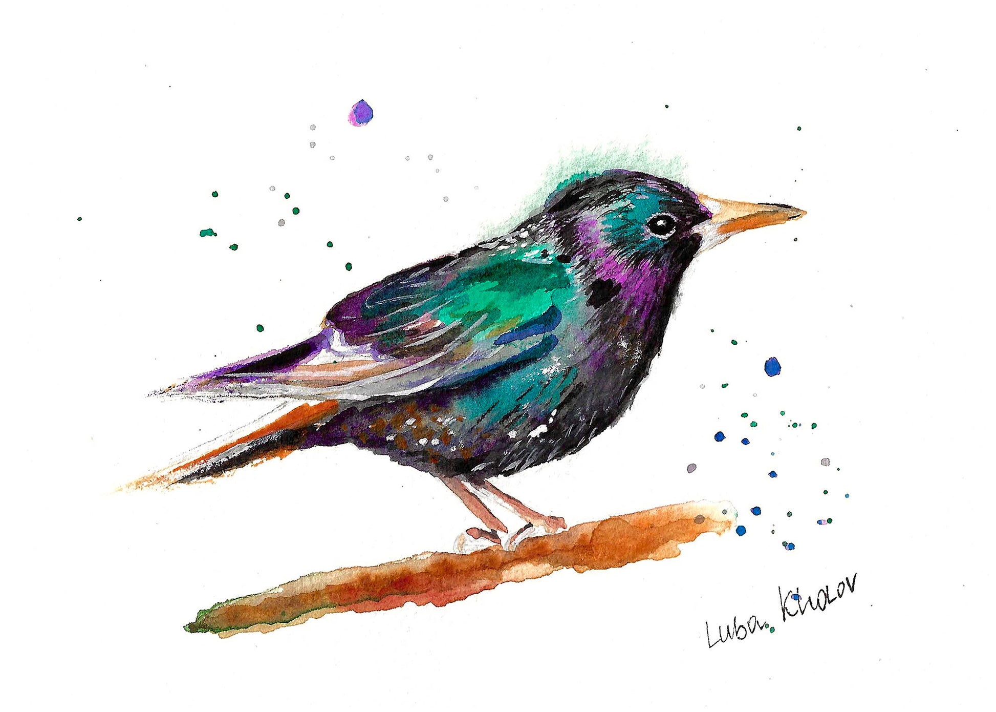 This watercolor painting captures the bold and determined spirit of the European starling, one of the most iconic birds of New York City. The species was introduced to Central Park in 1890 by admirers of Shakespeare who sought to populate America with every bird mentioned in his works.