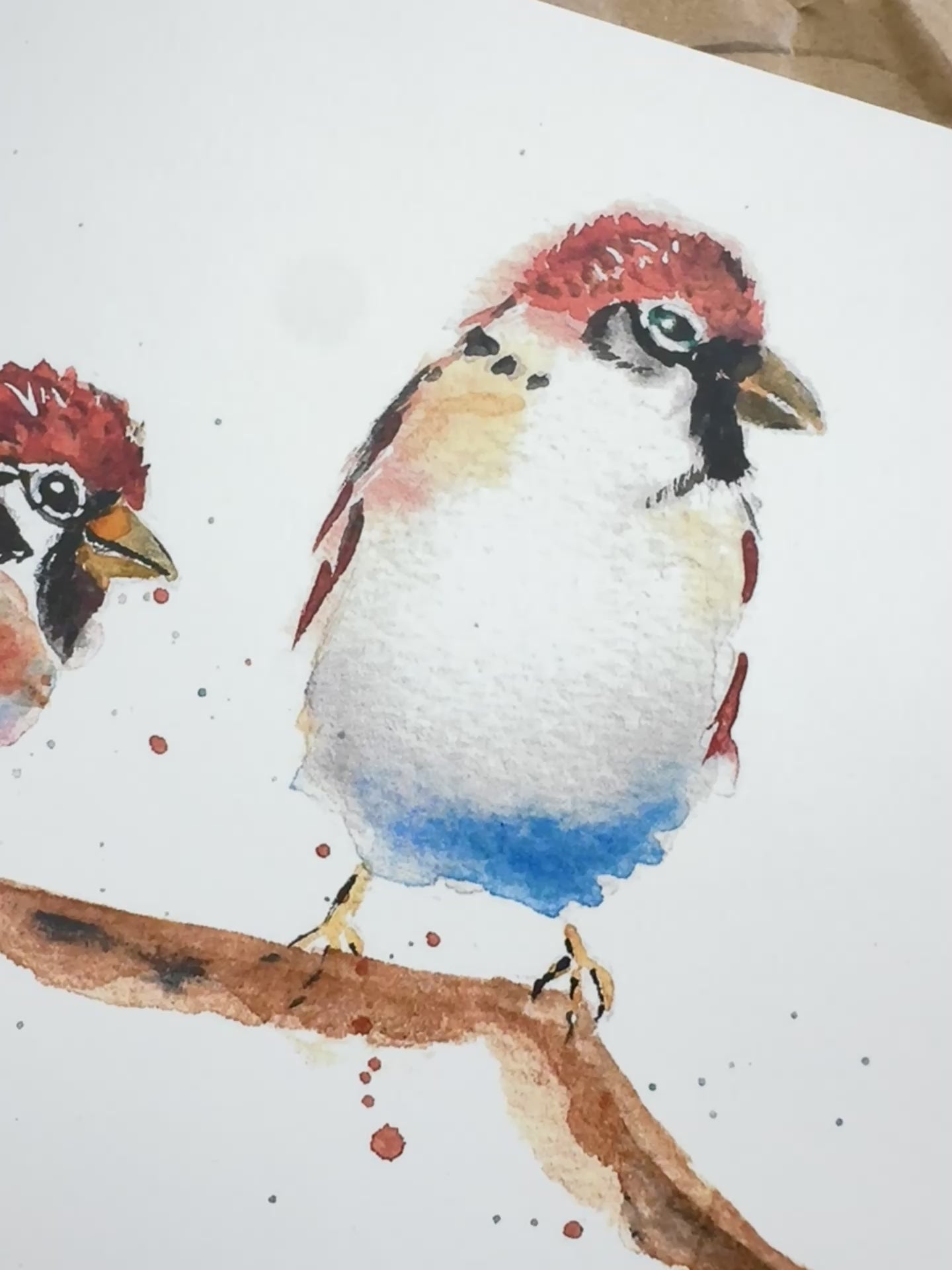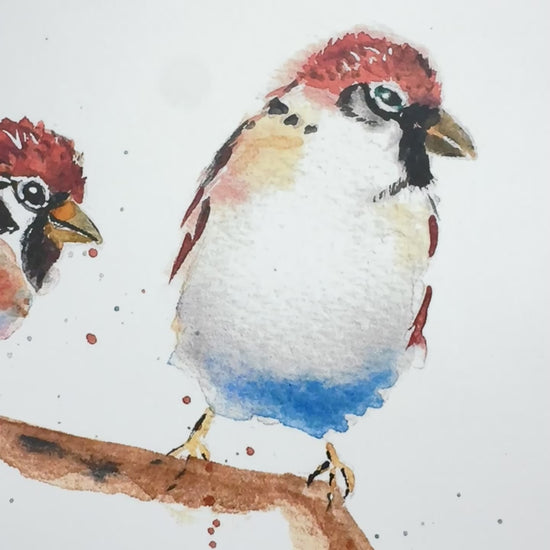 House Sparrows Art Print is reproduced from an original watercolor painting by Luba Kholov and is part of the Birds of NYC series.
