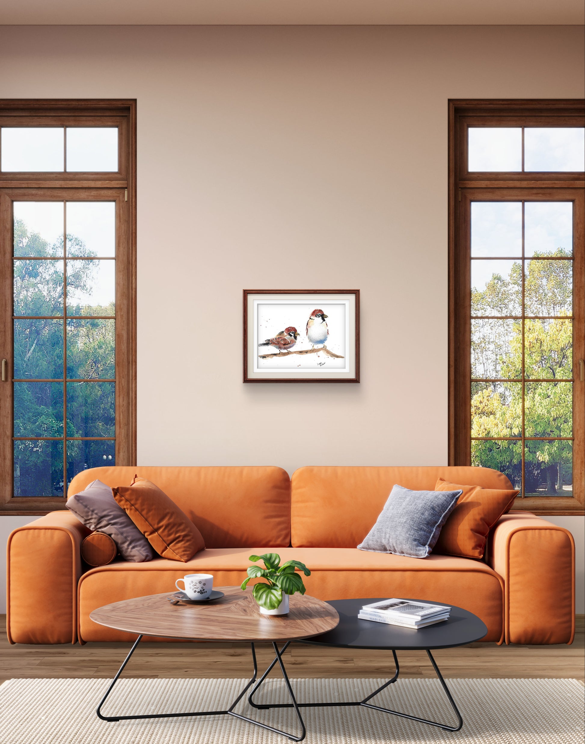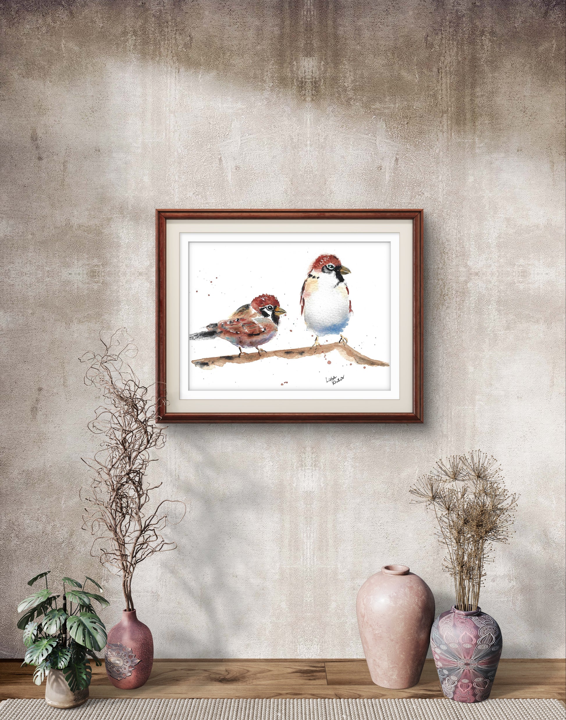 Inspired by the gentle companionship of sparrows, this piece captures a moment of quiet connection between two birds. House sparrows are known for their loyalty and togetherness, making this artwork a symbol of love, friendship, and warmth.