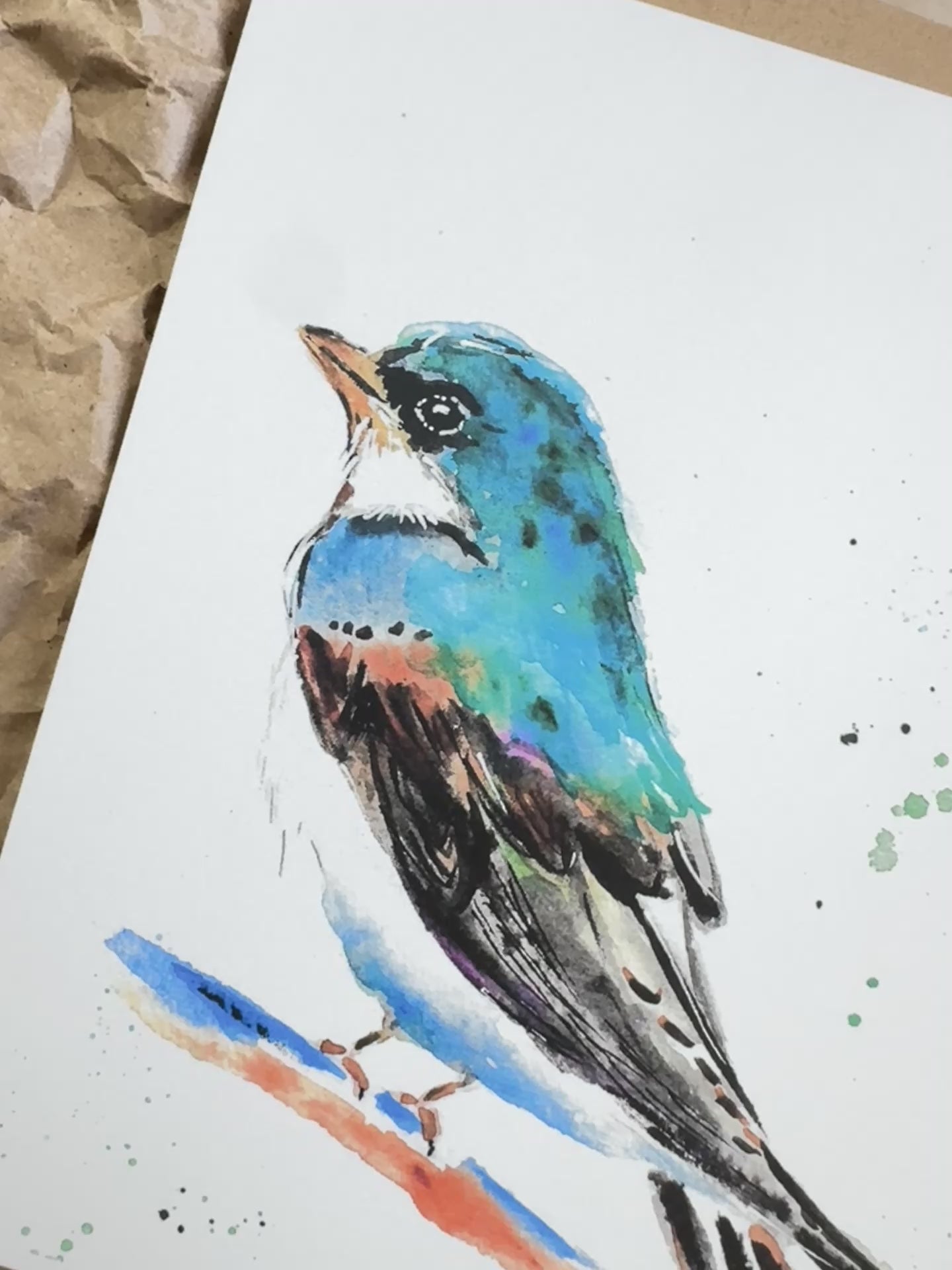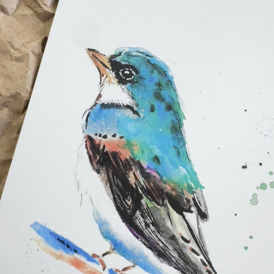Tree Swallow Art Print is reproduced from an original watercolor painting by Luba Kholov and is part of the Birds of NYC series.
